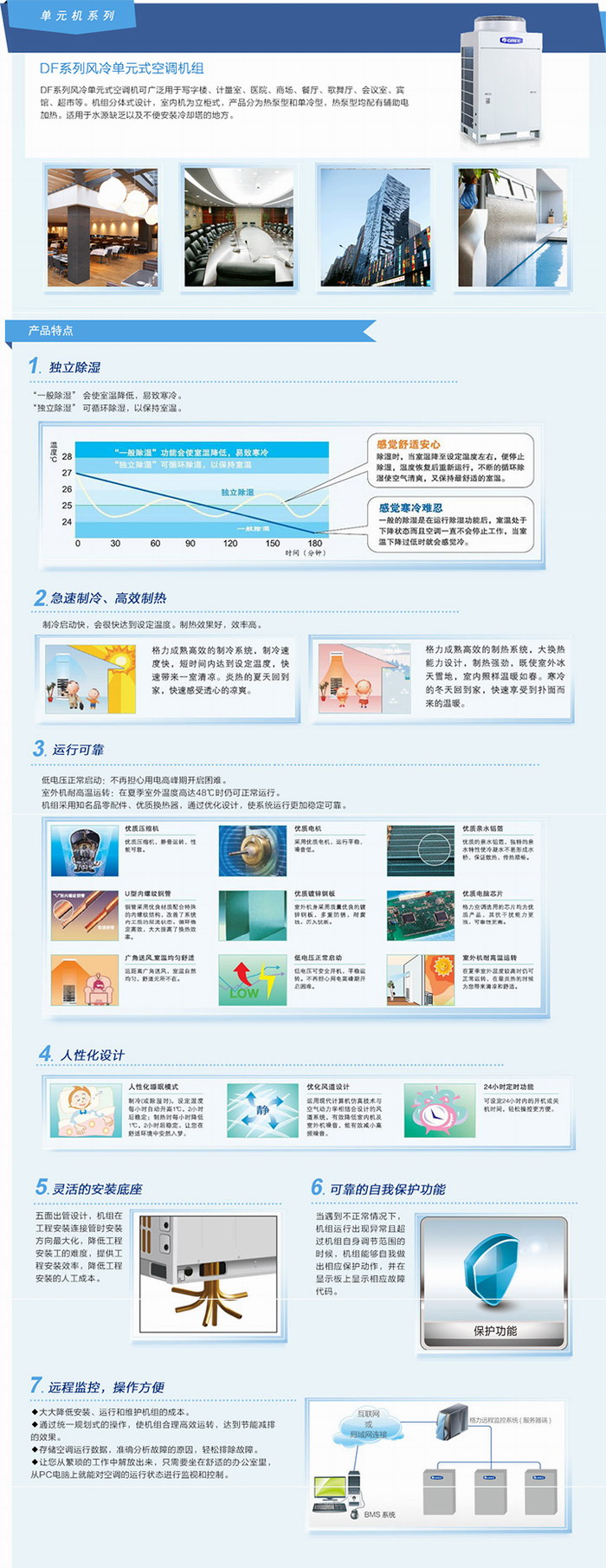DF系列風冷單元式空調機可廣泛用于寫字樓、計量室、醫院、商場、餐廳、歌舞廳、會議室、賓館、超市等。不需要連接冷卻塔及水處理設備,適用于水源缺乏以及不便安裝冷卻塔的地方。